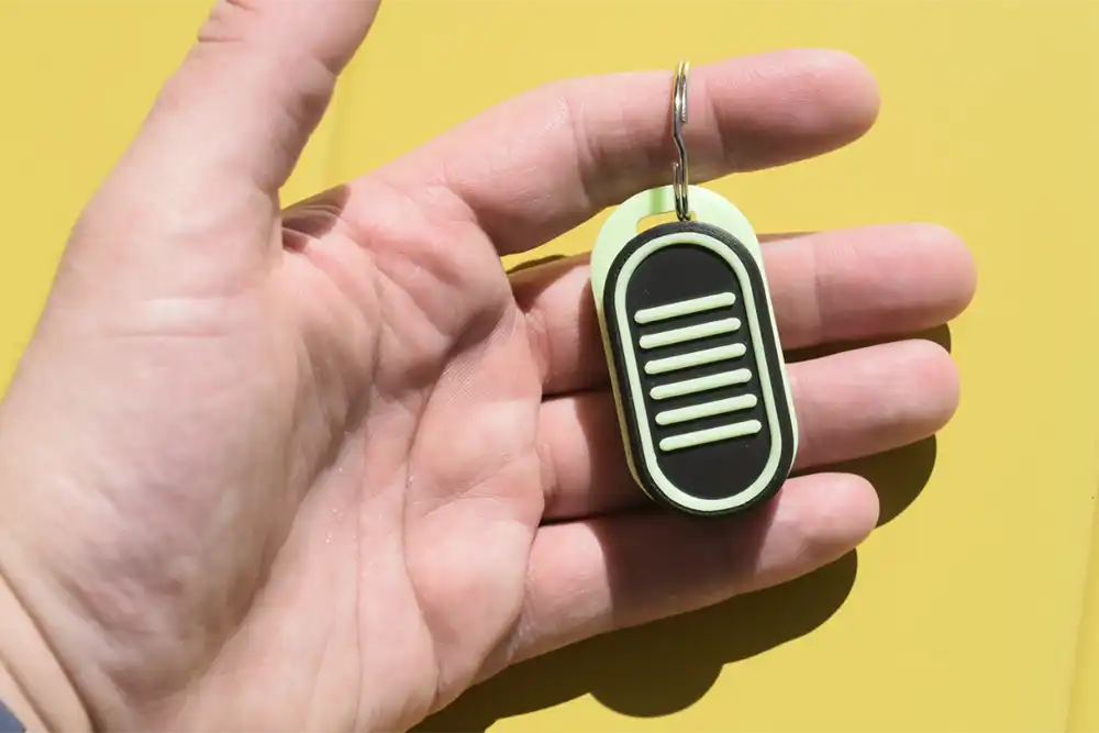 - Includes a free random-color glow-in-the-dark keychain holder