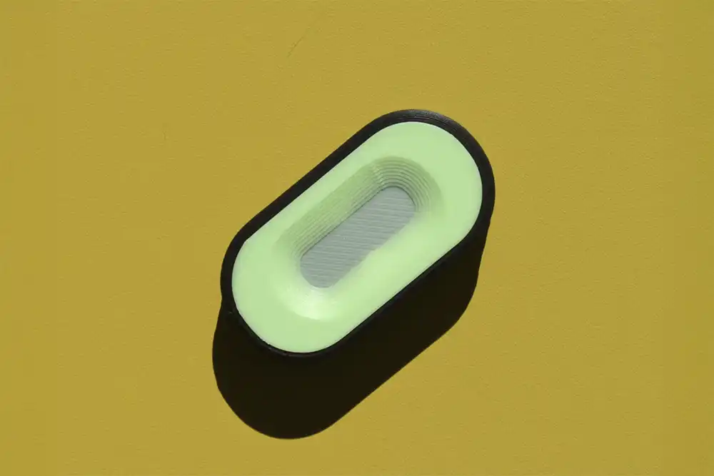 A sleek black fidget slider with glow-in-the-dark green accents. Featuring smooth parallel and valley textures, the Black ’n Glow Slider delivers satisfying glide day or night—and includes a free glow keychain holder.