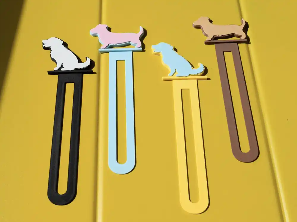 A customizable 3D printed bookmark featuring your favorite pet silhouette. Choose your colors and animal style for a charming, lightweight bookmark that keeps your place in any book.
