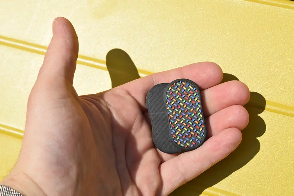 The Confetti Pill Slider is a special edition fidget celebrating two years of MozzieMakes. Featuring a vibrant confetti design, smooth magnetic motion, and your choice of clicky or silent feel — this is a celebration you can carry in your hand.