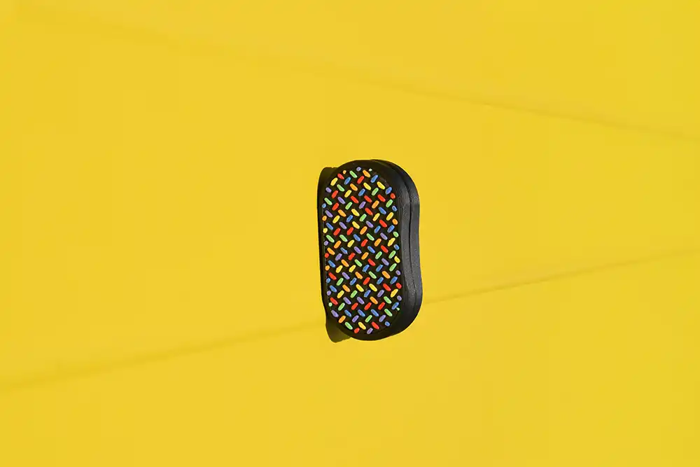 Celebrate with us. The Confetti Pill Slider is a special edition fidget created to mark two years of MozzieMakes. This colorful design blends the original colors that started our business into a vibrant confetti pattern that feels as joyful as it looks.